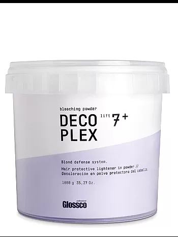 Glossco Deco Plex Lift 7+ on ammattilaistason vaalennusjauhe, joka vaalentaa hiuksia jopa seitsemän astetta samalla suojaten hiusrakennetta. Innovatiivinen Blond Defense System auttaa ehkäisemään hiusten katkeilua ja kuivumista vaalennusprosessin aikana, jättäen hiukset pehmeiksi ja kiiltäviksi.